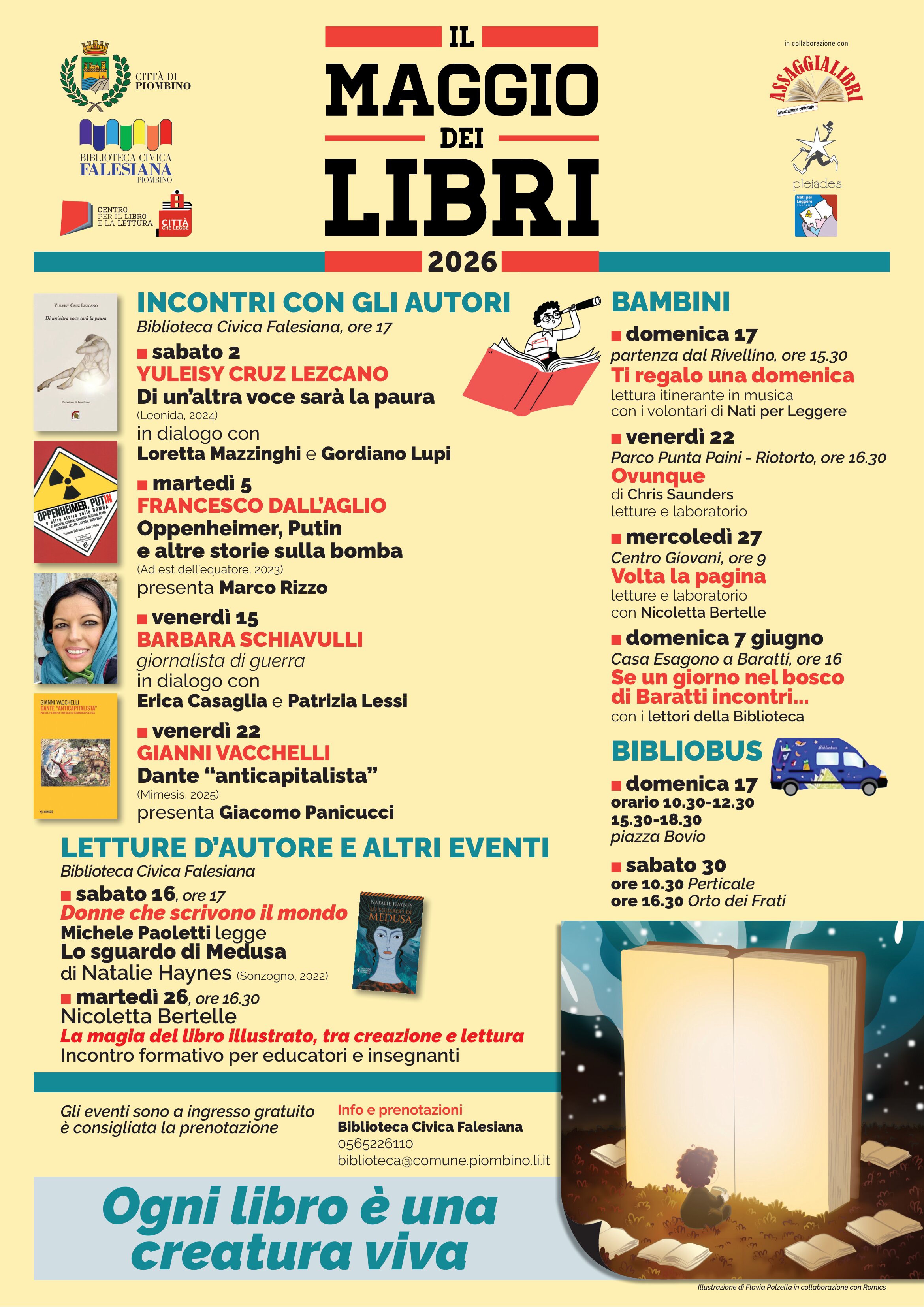 Anche quest’anno, il Centro per il Libro e la Lettura (CEPELL), organismo del Ministero della Cultura, propone di dedicare il mese di maggio alla promozione del libro e della lettura. Lo slogan dell’edizione 2026 è “Ogni libro è una creatura viva”.